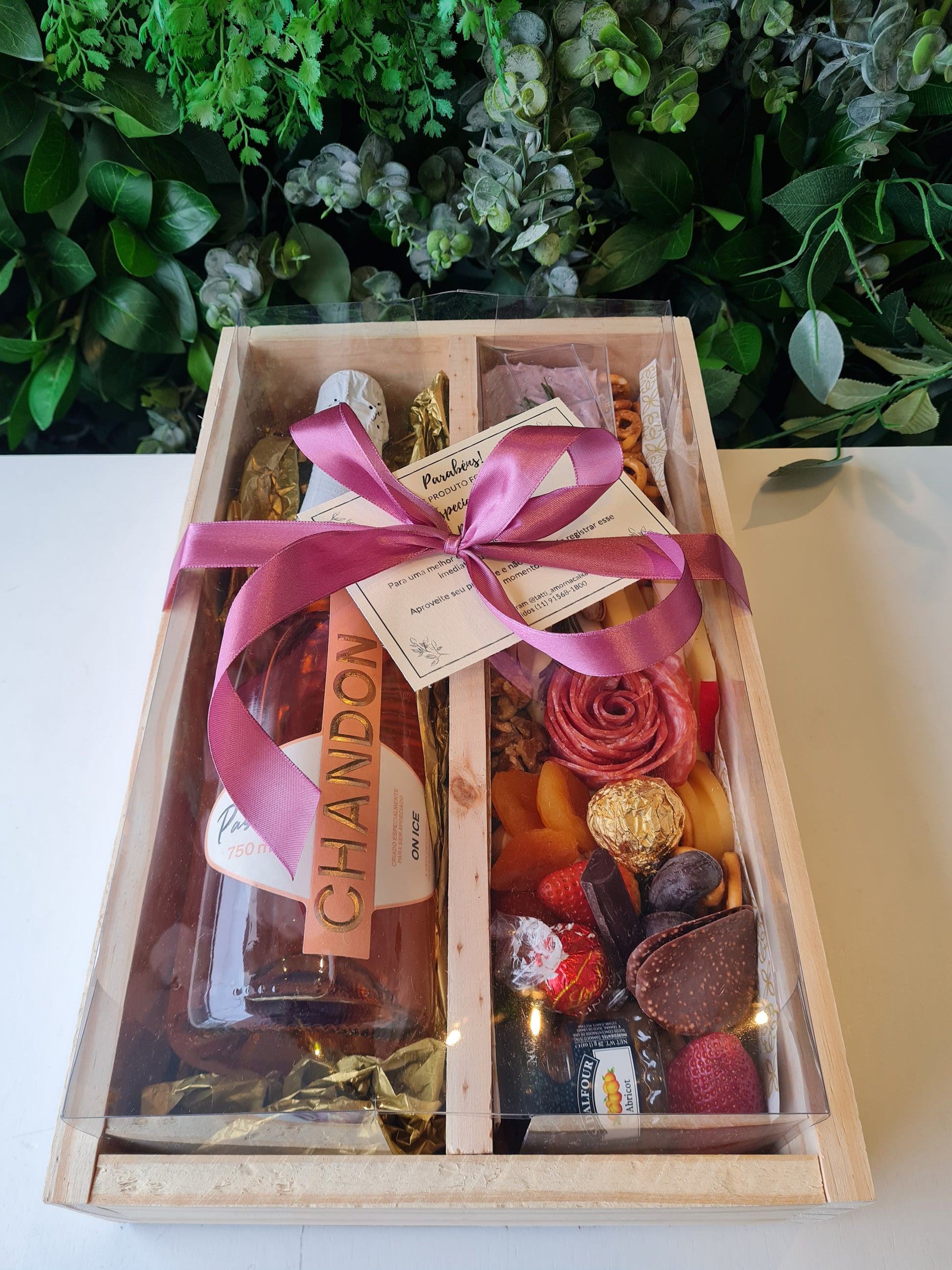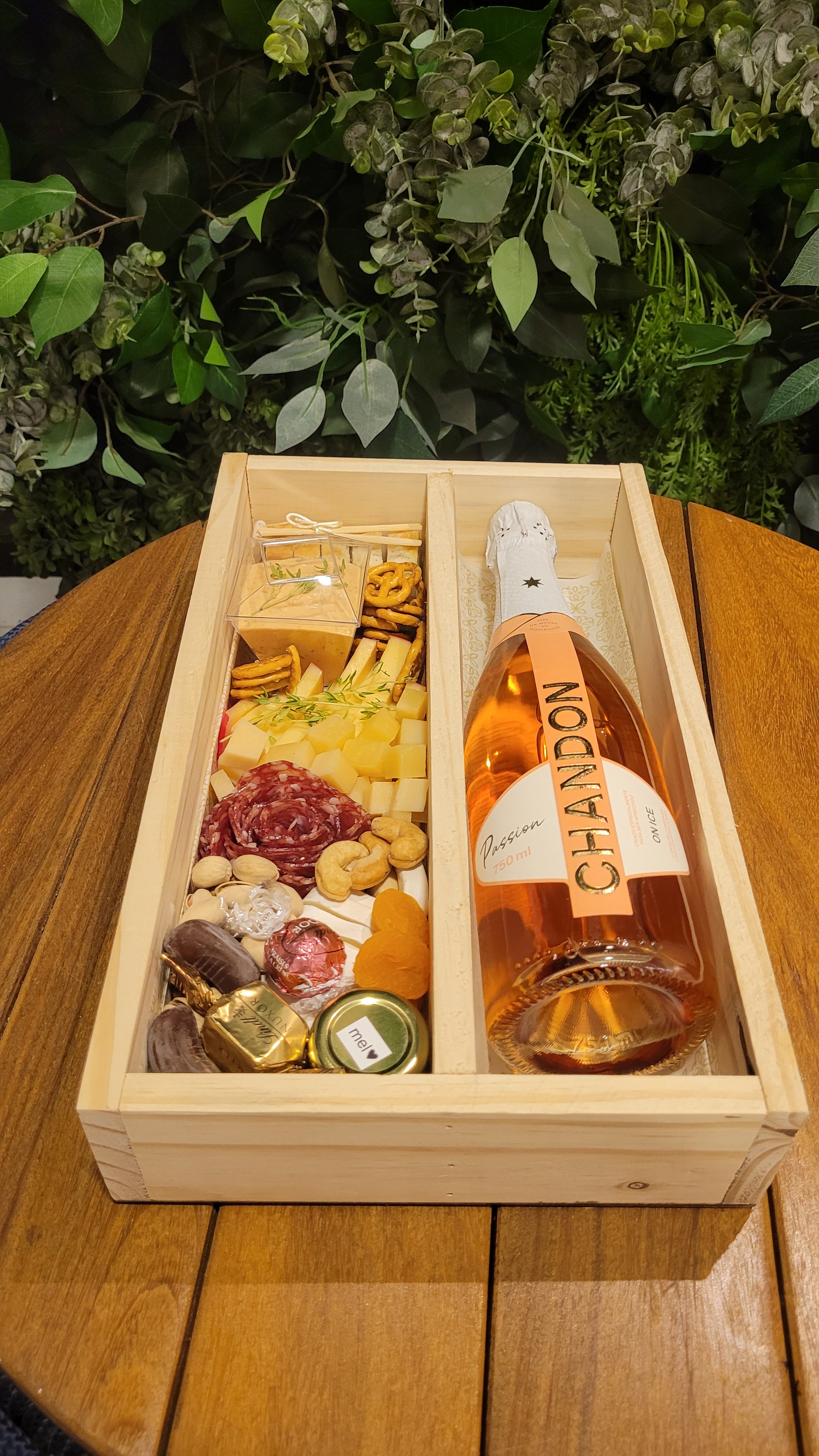 Uma caixa de frios exuberante e imponente, acompanhada pela sofisticação da Chandon. Ideal para compartilhar momentos a dois ou presentear alguém especial.
