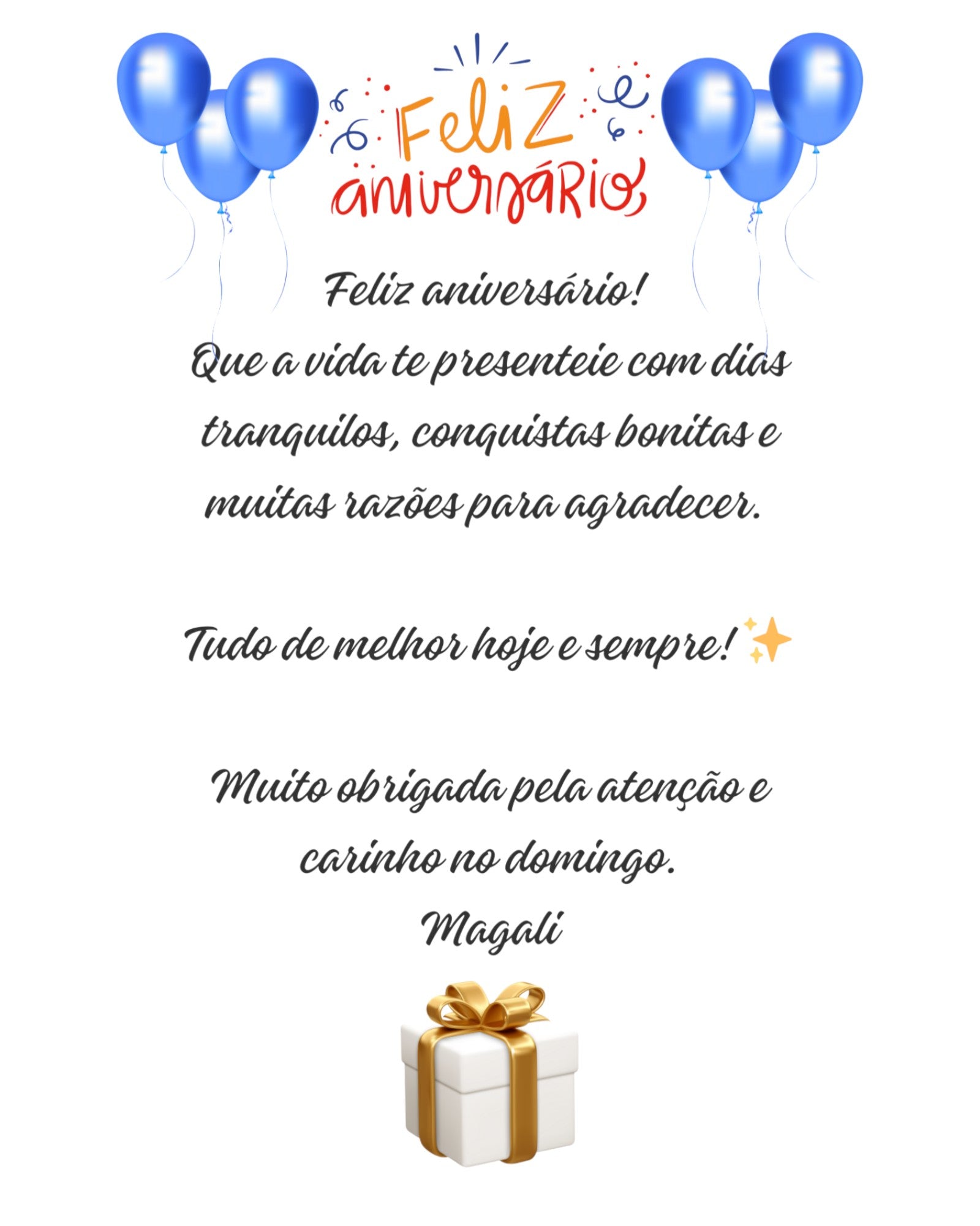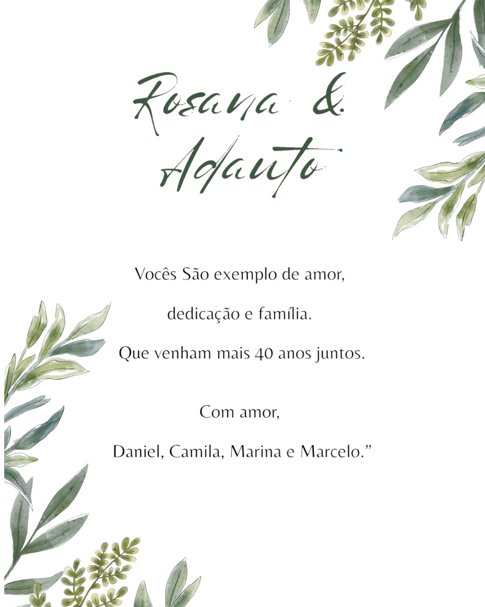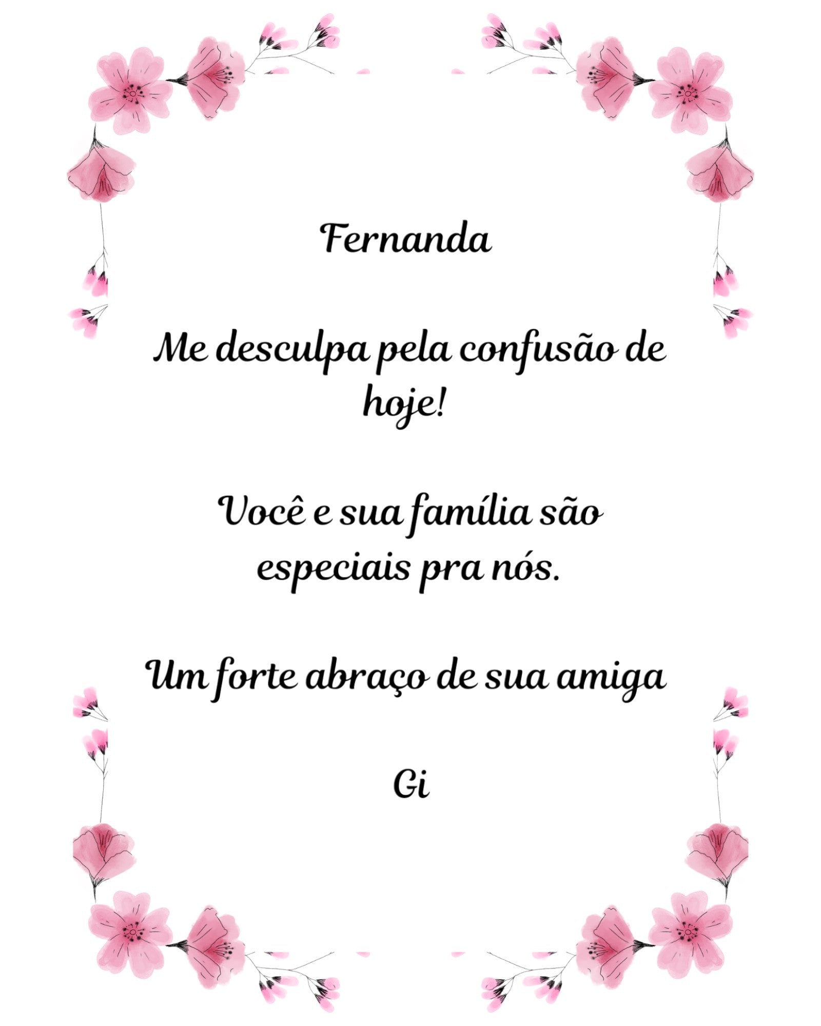 O texto que você nos enviar, será reproduzido no cartão sem qualquer alteração ou correção de português.