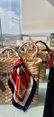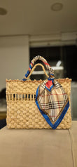 1 Bolsa de palha com lenço de cetim reutilizável em passeios do dia a dia.